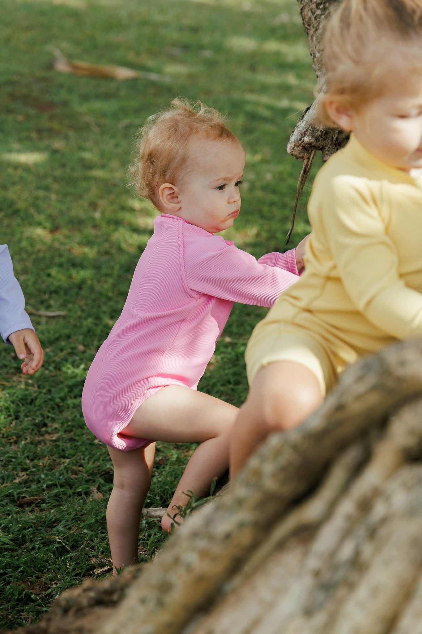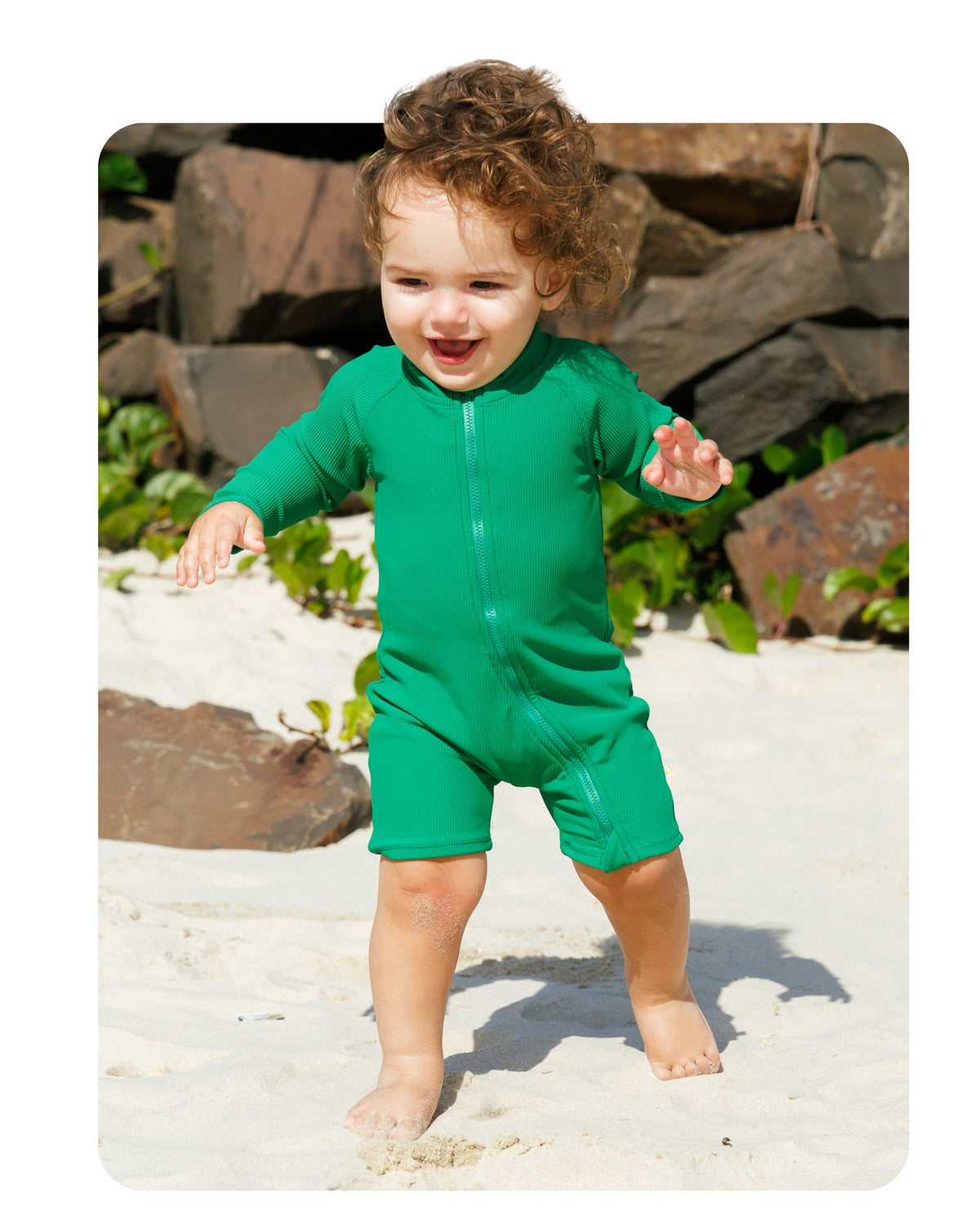Just unzip from the leg and leave the rest hanging. Say goodbye to soggy swimwear struggles and wiggly kids. Perfect for quick nappy changes.