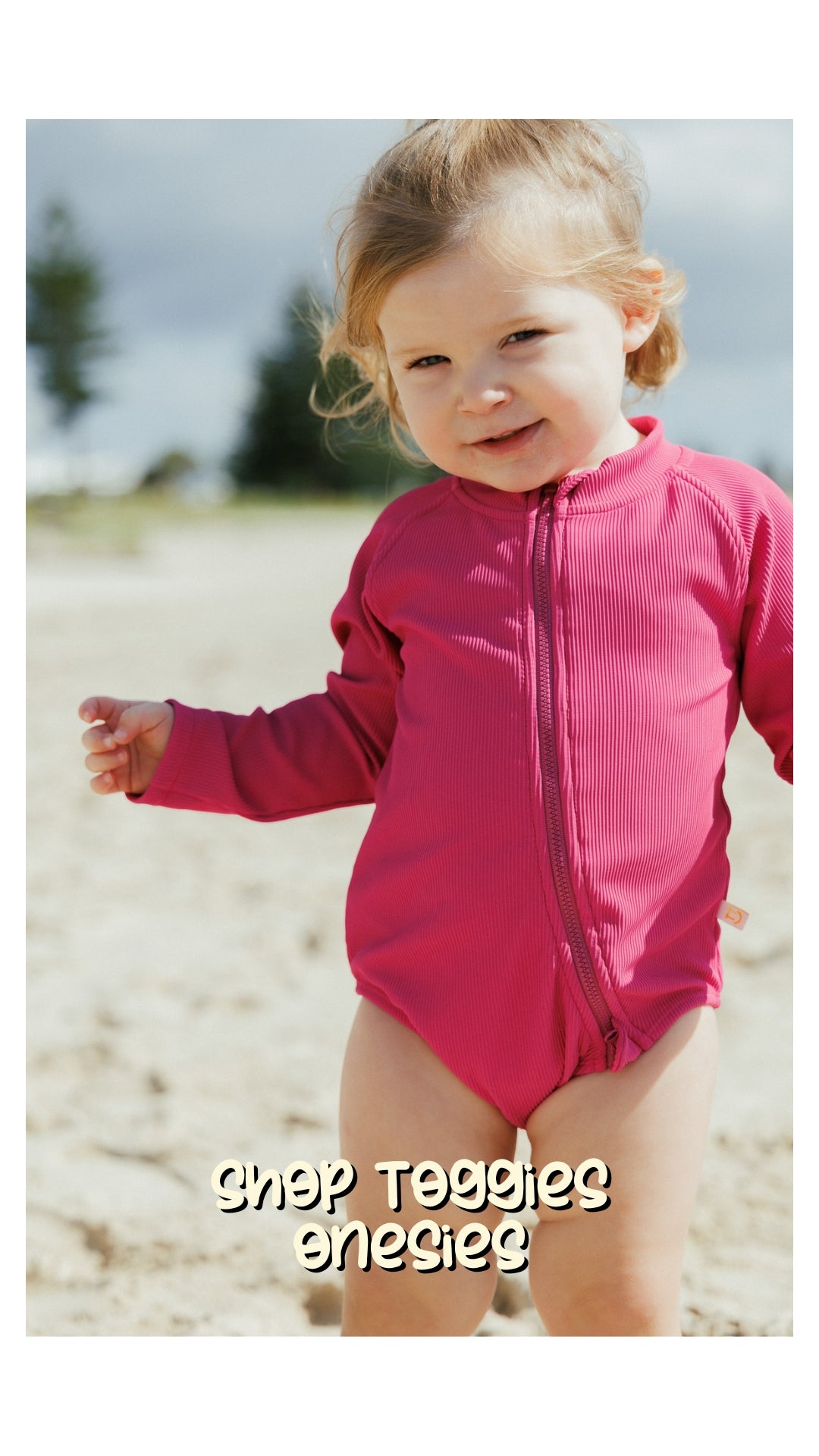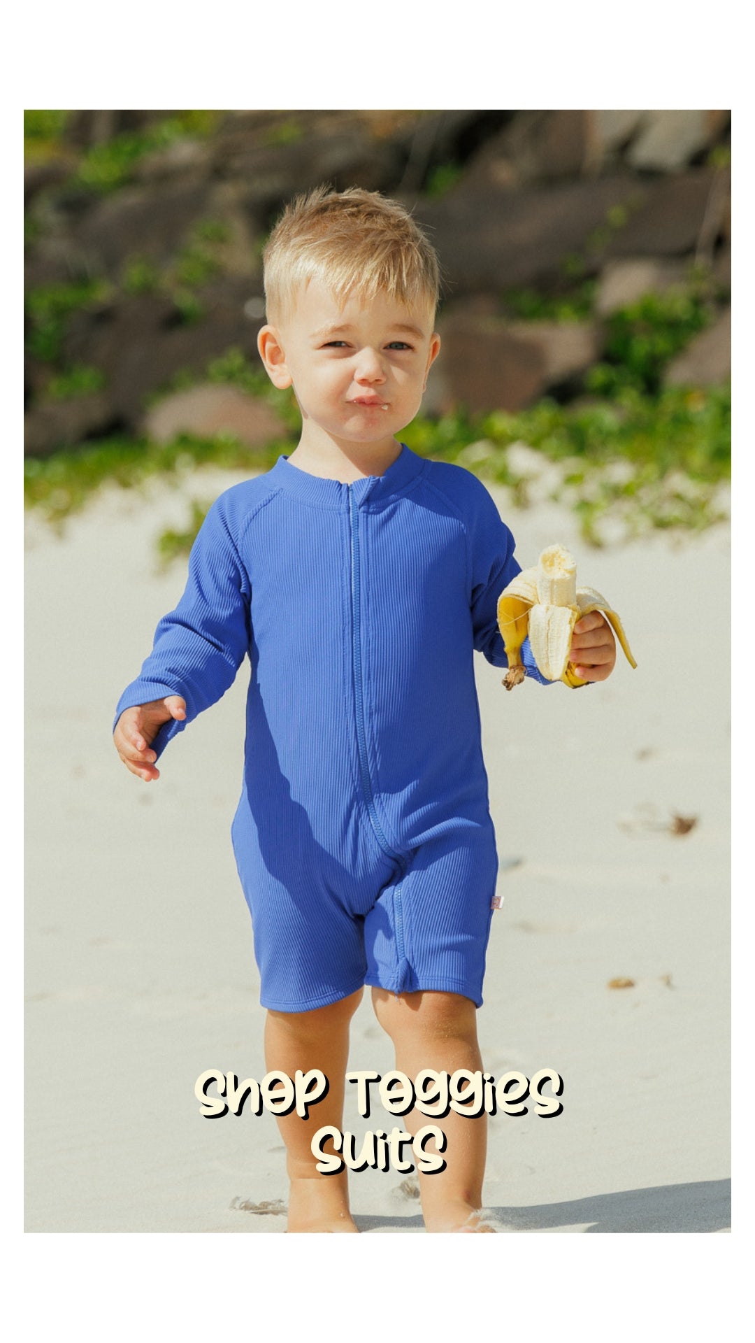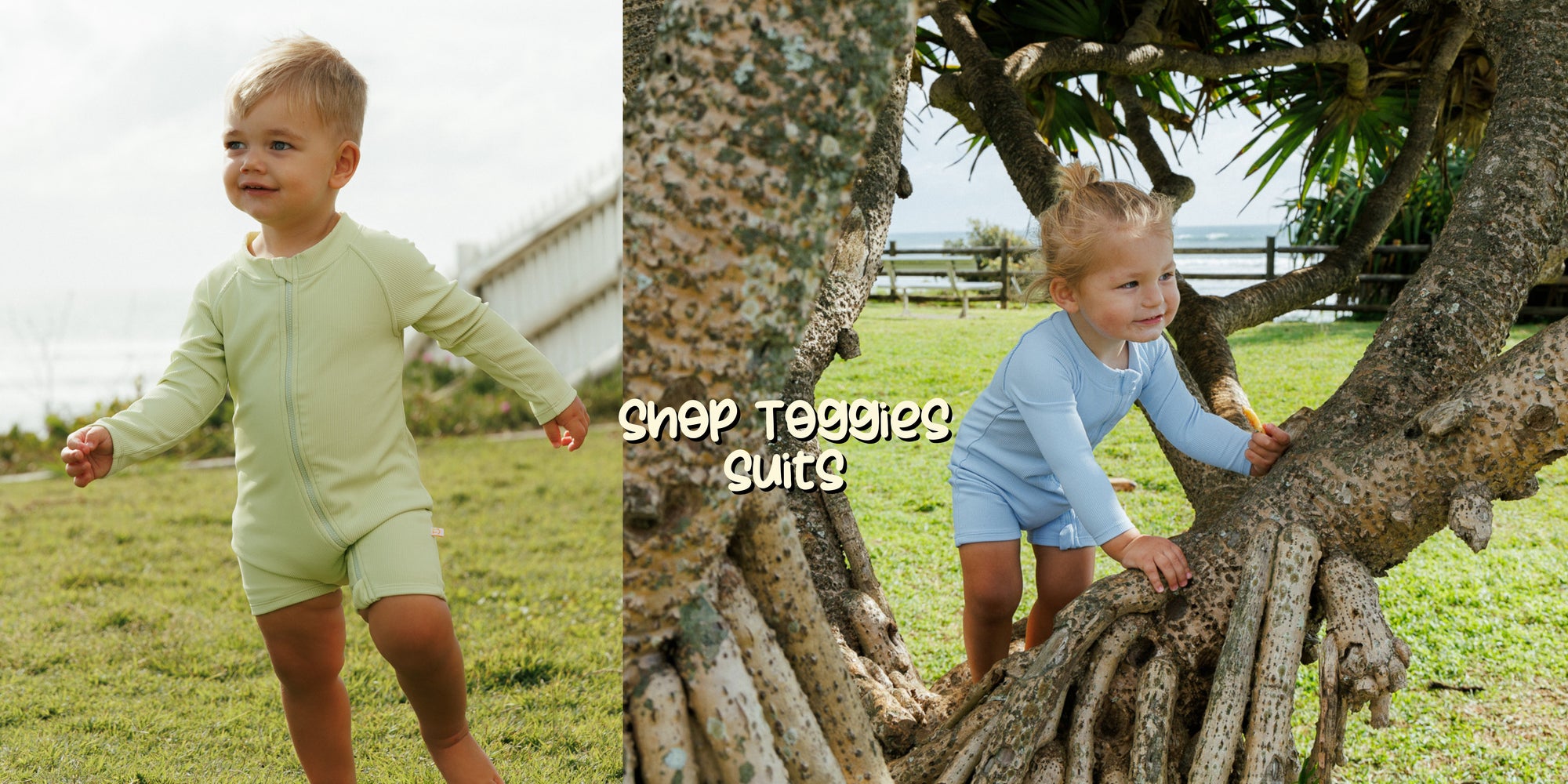 Just unzip your Toggies from the leg seam for the easiest nappy changes and quickest toilet trips. Say goodbye stressful beach days and pool escapades. Toggies are designed by Aussie mums to save YOUR sanity!